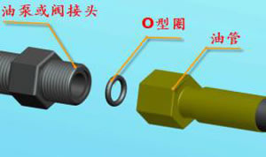 (1)所有的接頭均使用O型密封圈。O型密封圈簡單可靠,但安裝時(shí)一定要確保O型密封圈在槽內(nèi)。在垂直面上安裝O型密封圈容易掉落,使用凡士林油膏或黃油,能夠使安裝工作更容易,安裝方法如下圖。